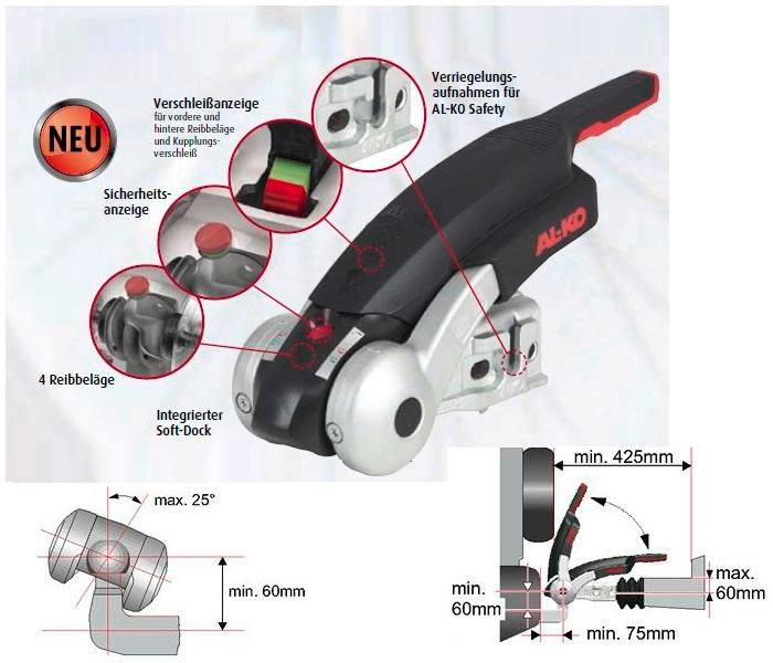 Attelage anti-lacets AL-KO AKS 3504 verrouillable Serrure intégrée M16 jusqu’à 3500 kg