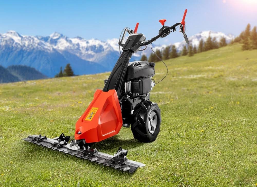 Tondeuse à barre de coupe thermique idéale pour les terrains difficiles, grandes herbes, vergers, pâturages, prairies et jardins naturels.