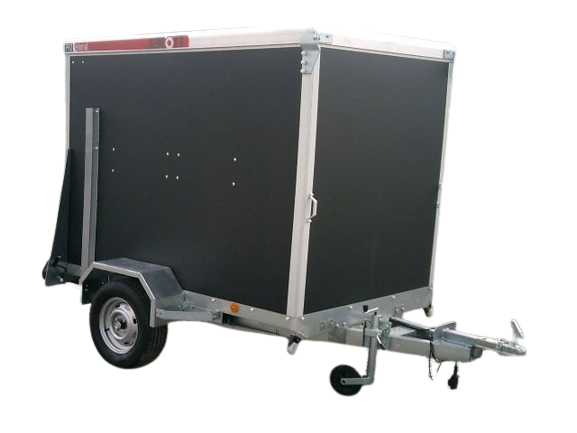 Remorque fourgon Jalon modèle B09009 conçue pour le transport sécurisé de marchandises ou de motos avec caisse fermée robuste et toit relevable facilitant le chargement adaptée à un usage particulier ou professionnel