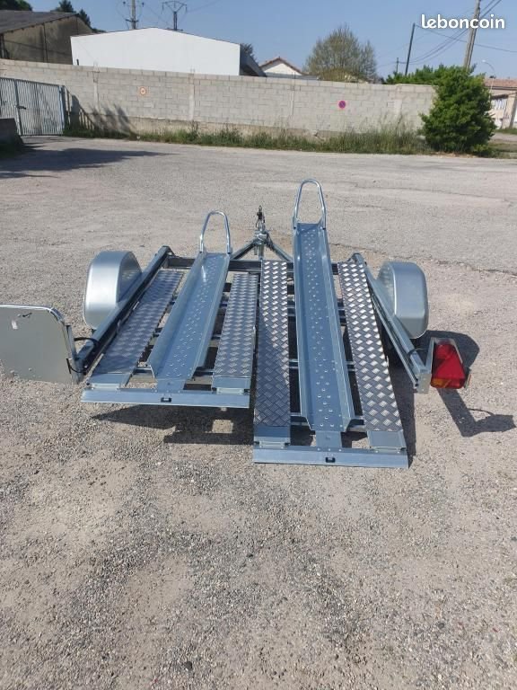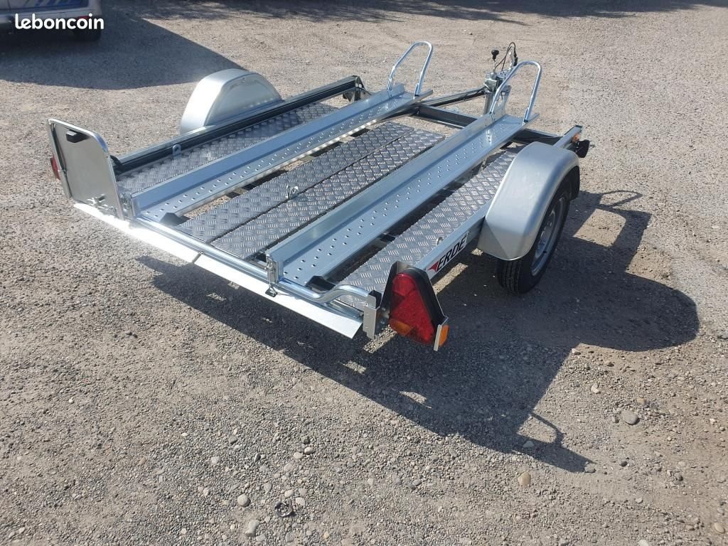 Remorque porte moto ERDE modèle PMB deux places conçue pour le transport sécurisé de deux motos avec chargement indépendant et accès facilité adaptée aux grosses cylindrées