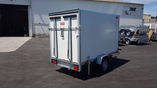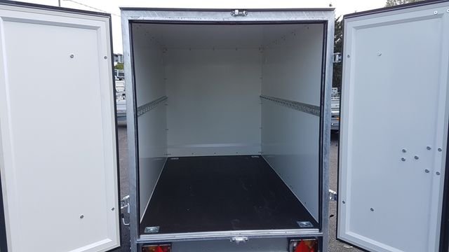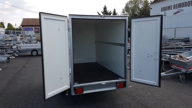 Remorque fourgon Niewiadow modèle F2513P conçue pour le transport sécurisé de marchandises avec caisse fermée robuste châssis galvanisé et équipement complet adaptée à un usage particulier ou professionnel